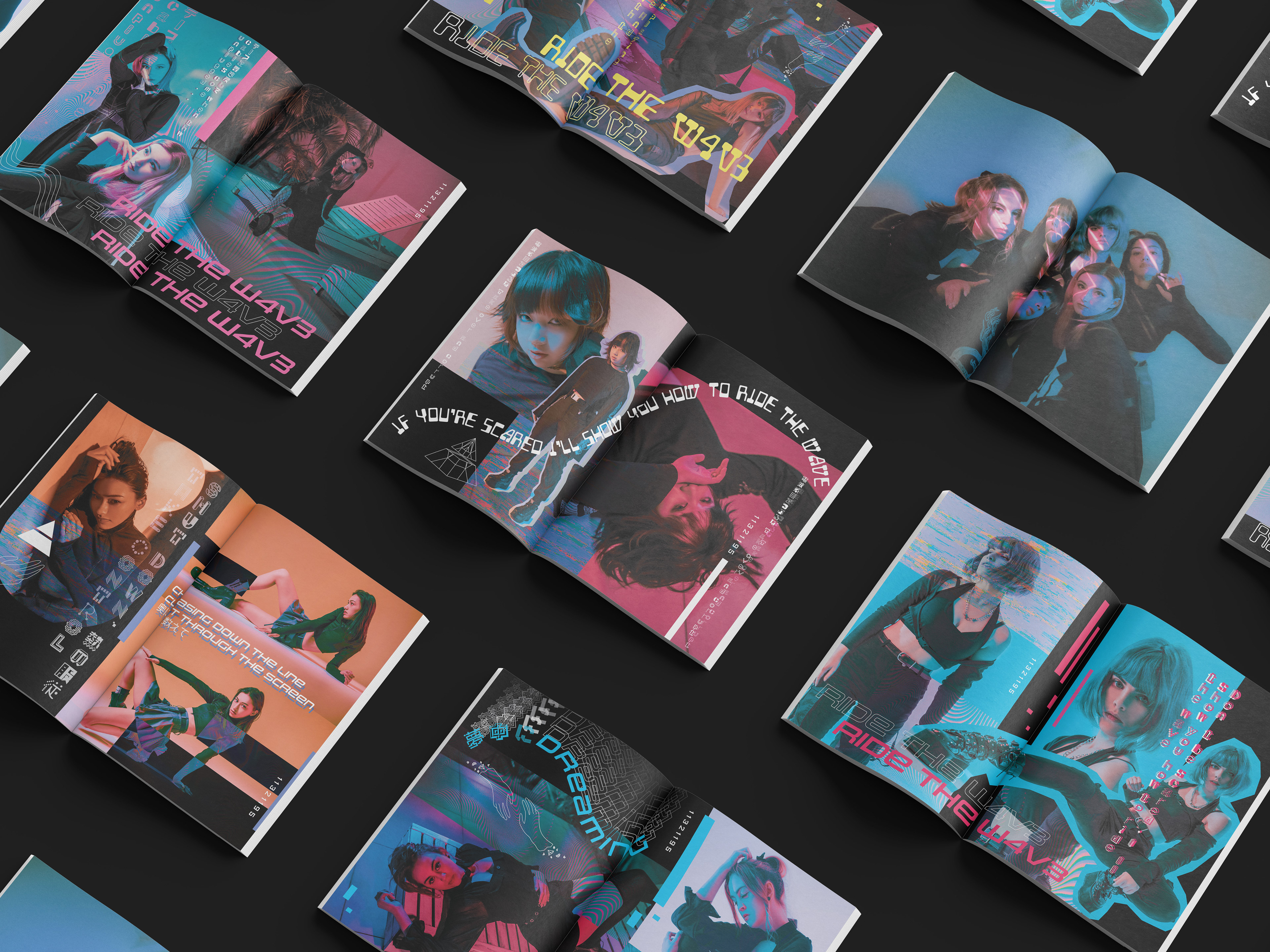 This A4 hardcover photobook was produced as a part of the Opalescent merchandise collection. Just like the album, this photobook has a light and a dark side, combining photos from 3 separate photoshoots and locations. I opted to create editorial-style spreads for this book to compliment the concepts, using lyrics and visual cues from the EP.